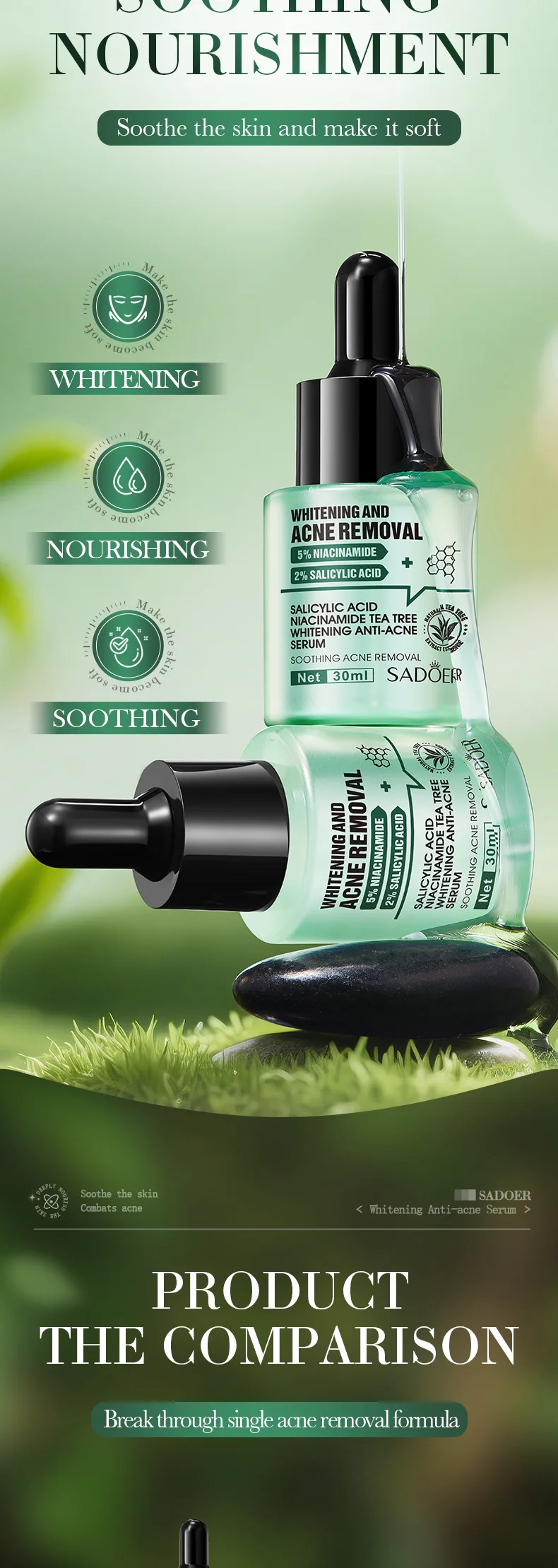 ▶This anti-acne serum uses effective anti-acne ingredients to effectively fight acne, help calm irritated skin, control acne, relieve acne growth, and gently protect the skin. Eliminates excess sebum and balances oil in the skin.Keep skin refreshing, clear and beautiful!